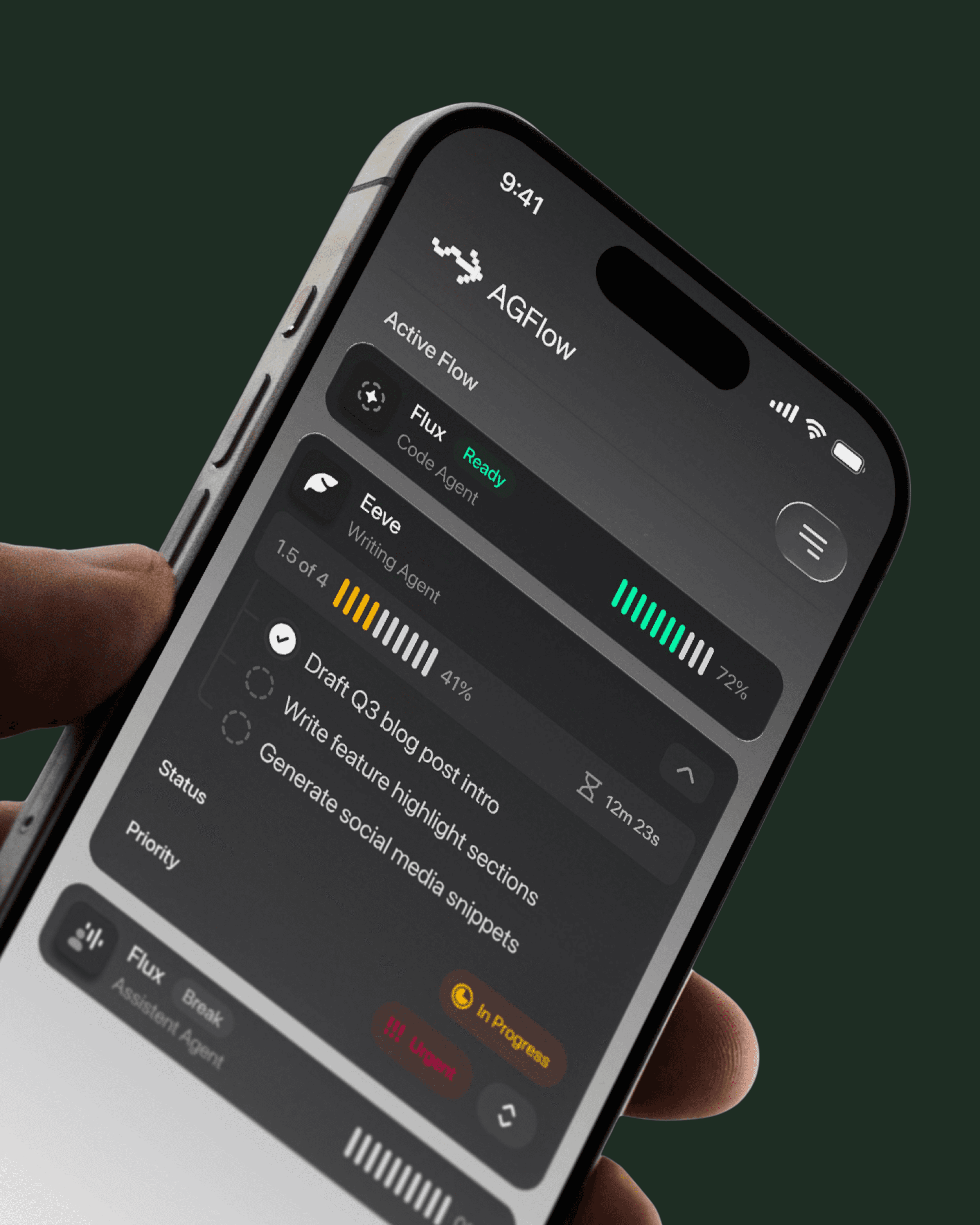 AGFlow kom till oss med en tydlig vision: en kalenderapp som inte bara visar vad du ska göra — utan aktivt hjälper dig att göra det. Utmaningen var att integrera AI-agenter på ett sätt som känns naturligt och hjälpsamt, inte påträngande eller tekniskt.